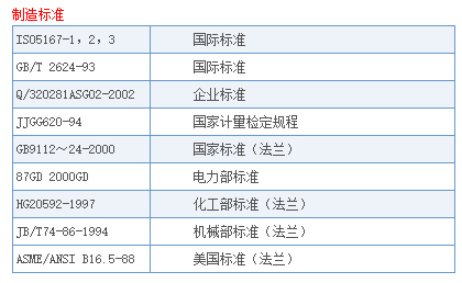 我厂生产的节流装置有:标准孔板,ISA1932喷嘴,长颈喷嘴和文丘里管等几十个品种。其技术条件符合中华人民共和国国家标准GB/T2624及国际标准ISO5167的规定。我厂除生产上述标准节流装置外,还生产目前国内普遍应用的各种特殊流件,如1/4圆喷嘴、圆缺孔板、环形孔板、双重孔板、内藏孔板、V锥形流量计、楔形流量计、插入式多喉径流量计、阿牛巴流量计、双文丘里管测风装置、机翼测风装置等30多种品种,1000多种规格。管径从DN10-3000mm,压力PN0.6-32MPa,温度-200℃~+600℃。我厂向用户提供的成套节流装置包括:节流件、取压装置、前10D、后5D(D为管道内径)测量管、连接法兰、引压管、阀和紧固件及附件(冷凝器、集气器、平衡器、隔离器等),还根据用户需要单独提供各种节流件和取压装置等。